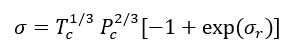 Reference 2 discusses several corresponding-states methods for estimation of surface tension. For example, in a corresponding-states method, Zuo and Stenby [2] have used a two-reference fluid corresponding-states approach to estimate surface tensions. For reducing parameters, Zuo and Stenby used Tc and Pc according to: