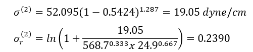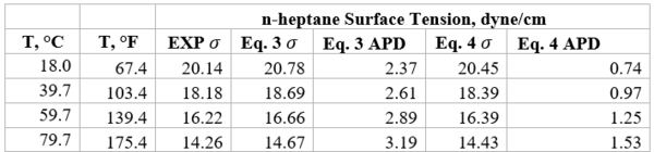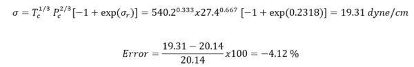 Example 1 - Estimate the surface tension of liquid n-heptane at 293 K. The experimental value is 20.14 dyne/cm (Jasper, 1972) in Reference [2].