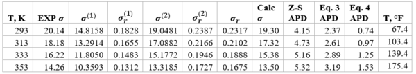 Table 4. Summary of results and error analysis for example 1 plus additional temperatures