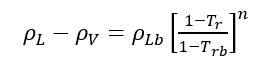 is the molal liquid density at the normal boiling point in moles/(cm)3. Tr is the reduced temperature, T/Tc, and Trb is the reduced temperature at the normal boiling temperature, Trb/Tc.