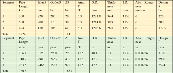 En los previos PDM hemos discutido los varios parámetros que están disponibles en el dominio público [3] y presentados en la Tabla 1. Nord Stream 1 posee dos (2) líneas paralelas, y cada una de ellas posee la capacidad para transportar en gas desde Rusia hasta Alemania a un caudal de 75.34 millones de PCSestd m3/día (2660.6 MMPCSD).