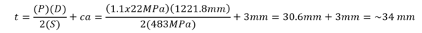 In the Barlow’s formula, there is no provision of corrosion allowance. If we include this in the Barlow’s formula and take 3 mm as corrosion allowance (ca), then