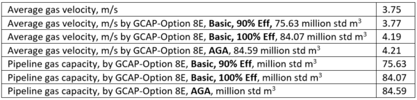 The methodology used above demonstrates how standard long distance pipeline flow correlations/equations (BASIC and AGA equations) can be used in evaluating the design flow rates of an installed or of an operating pipeline. It was noted that the Basic equation with 90%-line efficiency matched the published design capacity very closely.