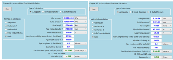 The BASIC equation estimated gas flow of 84.07 million Std m3 (2969 MMscfd) of gas assuming 100 % efficiency. The BASIC equation estimated gas flow of 75.63 million Std m3 (2671 MMscfd) assuming 90 % efficiency.