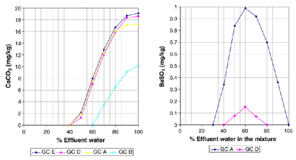 The results of the computer scaling study by Salman et. al. [3] are reported below. None of the cases modelled below predicted any CaSO4 or SrSO4 scales and these are not discussed further.