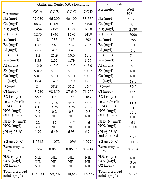 Table 3. API analyses of effluent waters for GC's and formation water [3]
