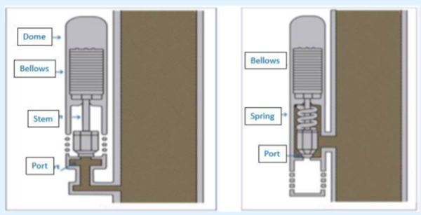 Figure 7 [9] illustrates the various integrated components of a typical GLV. Inlet/Outlet gas ports, dome and bellows configuration, packings, and reverse flow check valve are shown. GLV’s rely on a restriction orifice (identified as the port in Figure 7) for control of injection gas flowrate. Correct design and configuration ensure that “critical” flow for a given orifice size is avoided. The casing gas injection rate and flowing conditions should, by design, yield subsonic flow through the selected Choke, or port. Further discussion on this topic will be addressed in Part II of this series on Gas Lift.