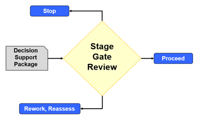 The Capital Value Process (CVP) divides the development of a business opportunity into 5 stages, each having a clear set of activities and deliverables that must be accomplished. Each development stage ends with a Stage Gate. The stage gates are major milestones where a management review is required to determine whether a project can advance. Decision support packages (DSP) are produced and submitted to the gatekeeper seeking approval to move to the next stage.