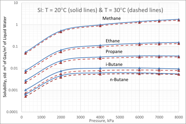 In Part 1 of this series, we will focus on the solubility of light hydrocarbon gases such as CH4, C2H6, C3H8, iC4H10, and nC4H10. We will review and present example available experimental solubility data and a thermodynamic model. For the case study, we will present diagrams to show the effect of temperature and pressure on the solubility of these light hydrocarbon gases in water.