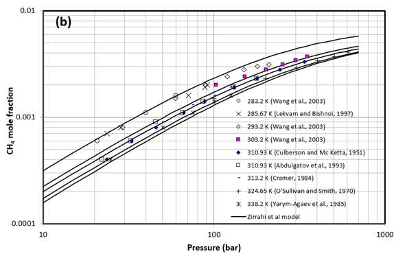 - Zirrahi, M., Azin, R., Hassanzadeh, H., Moshfeghian, M. “Mutual solubility of CH4, CO2, H2S, and their mixtures in brine under subsurface disposal conditions,” Fluid Phase Equilibria, Fluid Phase Equilibria 324, 80–93. 2012