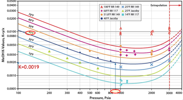 Where: K = MeOH vapor-liquid equilibrium ratio