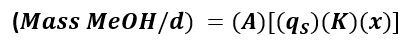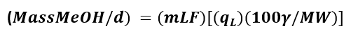 (kg MeOH/d) = 1.35x106 (1.4125) (0.0019) (0.156) = 565 kg/d