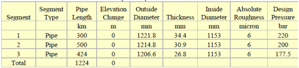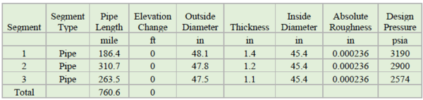 Tables 2 and 3 present a summary of specifications for each segment of pipeline.