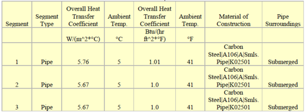 Table 2 – Pipeline specifications in SI and FPS units.