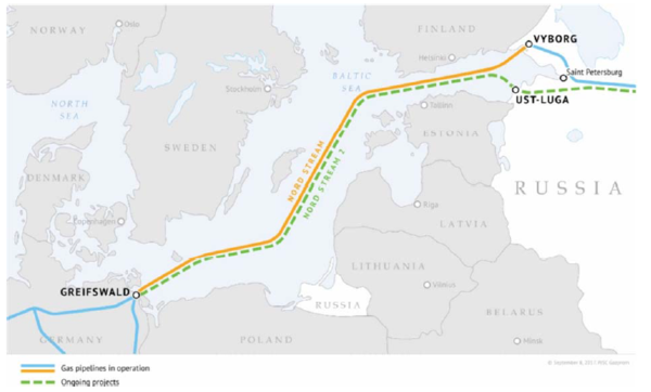 Figure 1 – The Nord Streams 1 and 2 dense phase natural gas pipelines, ©September 8, 2017,